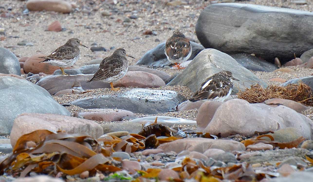The rocky shore land next to the cottage is attractive to waders, rock pipits, wagtails and herons. Great Skua pass overhead throughout the summer. The sea has gulls, terns (including Little Tern), Guillemots and divers (mainly Black Throated and Great Northern Diver). In easterly winds, Manx and Sooty Shearwaters can sometimes be seen. There is a Little Tern colony beside the river that crosses the long beach. There are also numerous sea ducks, such as Eider and Scotter. Curlew and Lapwing are also recorded in season in local fields.