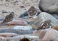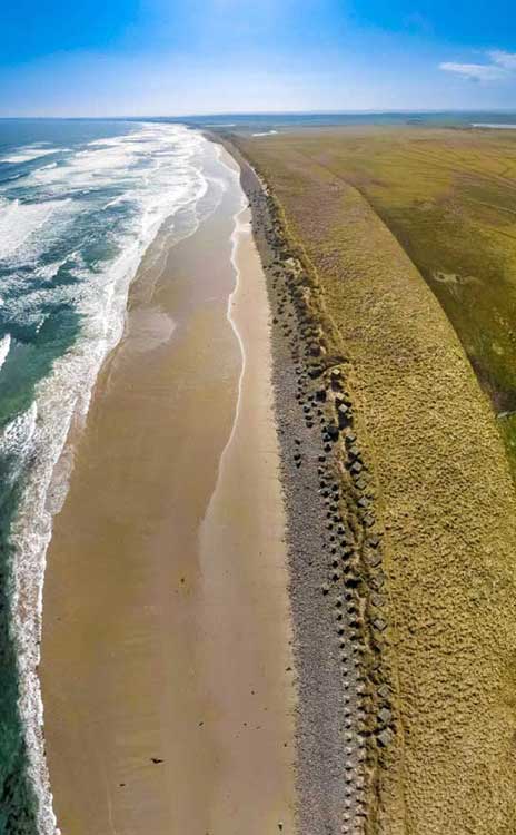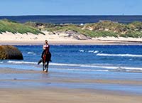 The rocky shore land next to the cottage is attractive to waders, rock pipits, wagtails and herons. Great Skua pass overhead throughout the summer. The sea has gulls, terns (including Little Tern), Guillemots and divers (mainly Black Throated and Great Northern Diver). In easterly winds, Manx and Sooty Shearwaters can sometimes be seen. There is a Little Tern colony beside the river that crosses the long beach. There are also numerous sea ducks, such as Eider and Scotter. Curlew and Lapwing are also recorded in season in local fields.